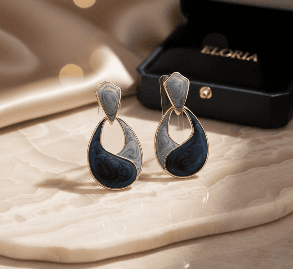 Be the first to review “Eloria Blue & Grey Marble Drop Earrings” Cancel reply
