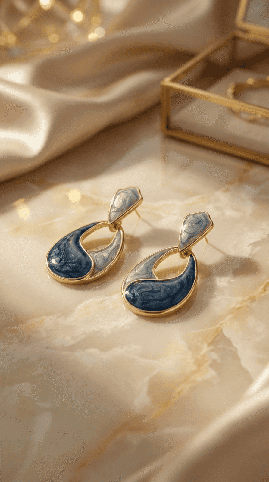Elevate your jewellery collection with these elegant blue marble drop earrings crafted for women who love refined luxury and contemporary fashion. Featuring a rich blend of deep navy and soft grey marble textures, this design reflects artistic detailing that instantly enhances your overall look. The smooth finish combined with anti tarnish gold plating gives these earrings a premium shine that remains beautiful over time.