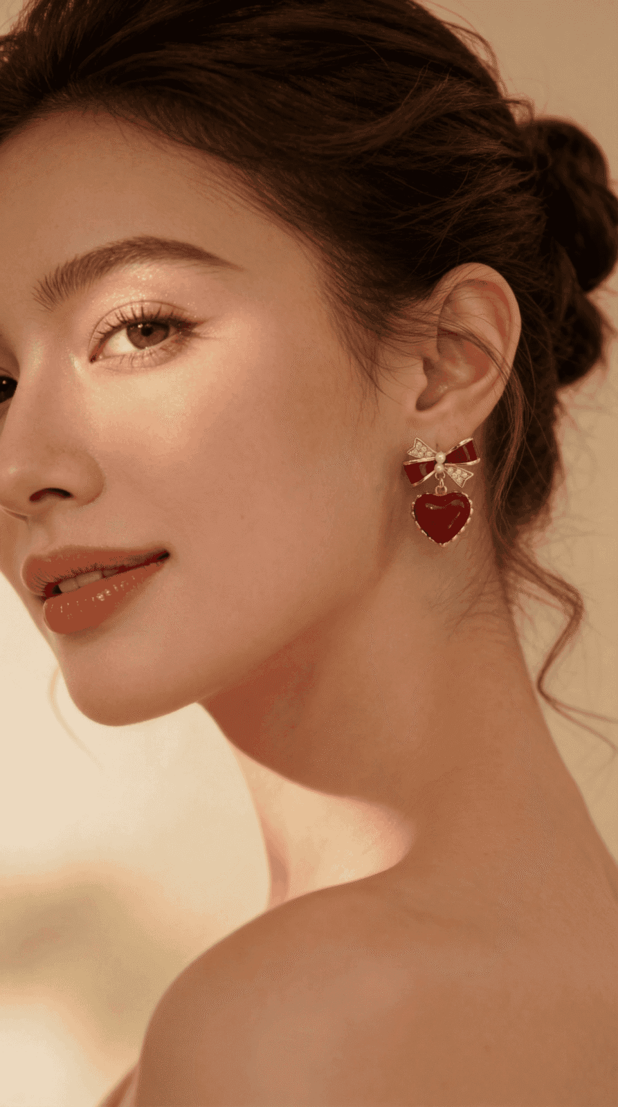 Eloria Red Heart Bow Gold Plated Earrings